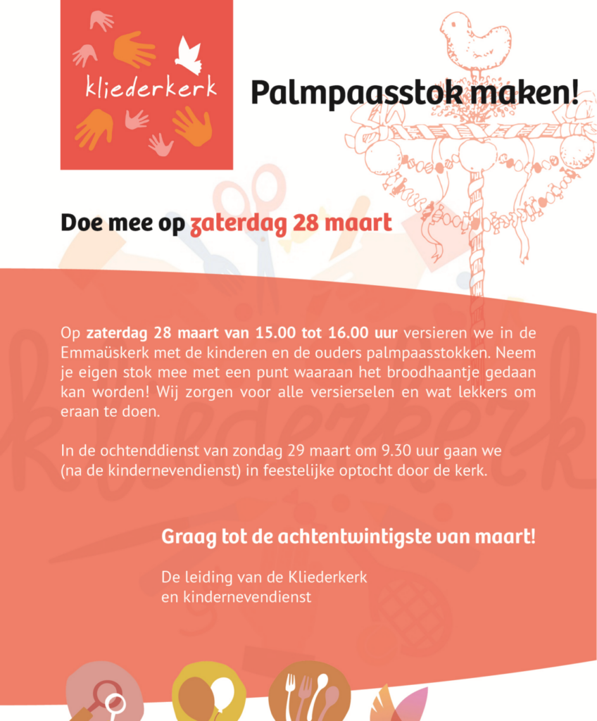 We zouden het heel fijn vinden als jij mee zou willen werken in het createam. En aan helpende handjes op de zondag zelf hebben we altijd behoefte! Mail gerust naar kliederkerk@pgbarneveld.nl voor meer informatie.