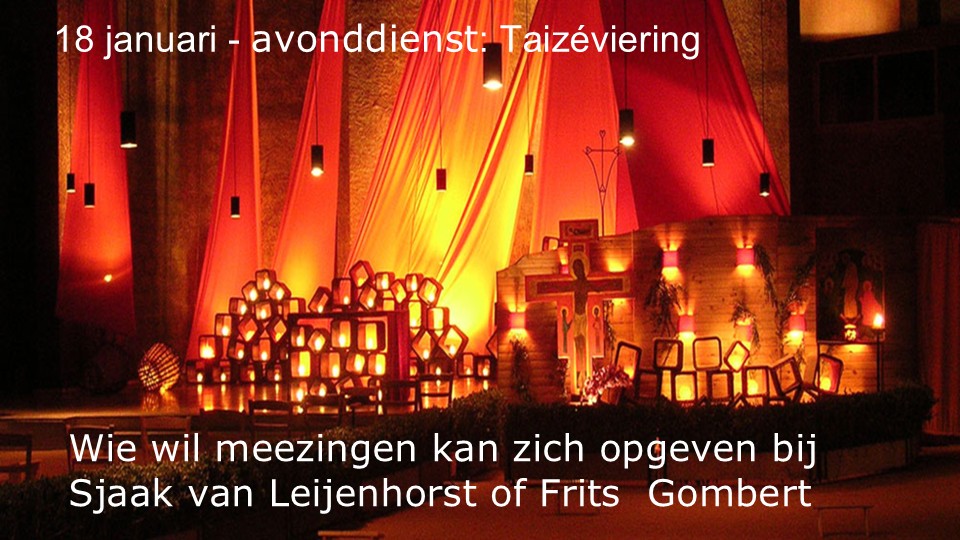 Taizéviering zondag 18 januari 2026: Wie mee wil zingen kan zich opgeven.